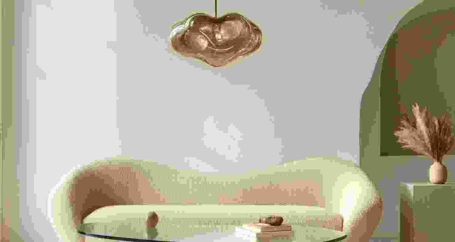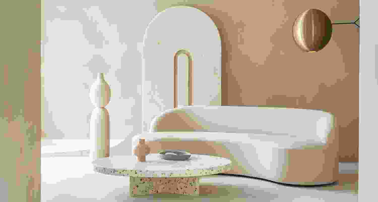 Modern minimalist interior design featuring elegant organic shapes harmonizing comfort with style in neutral tones.